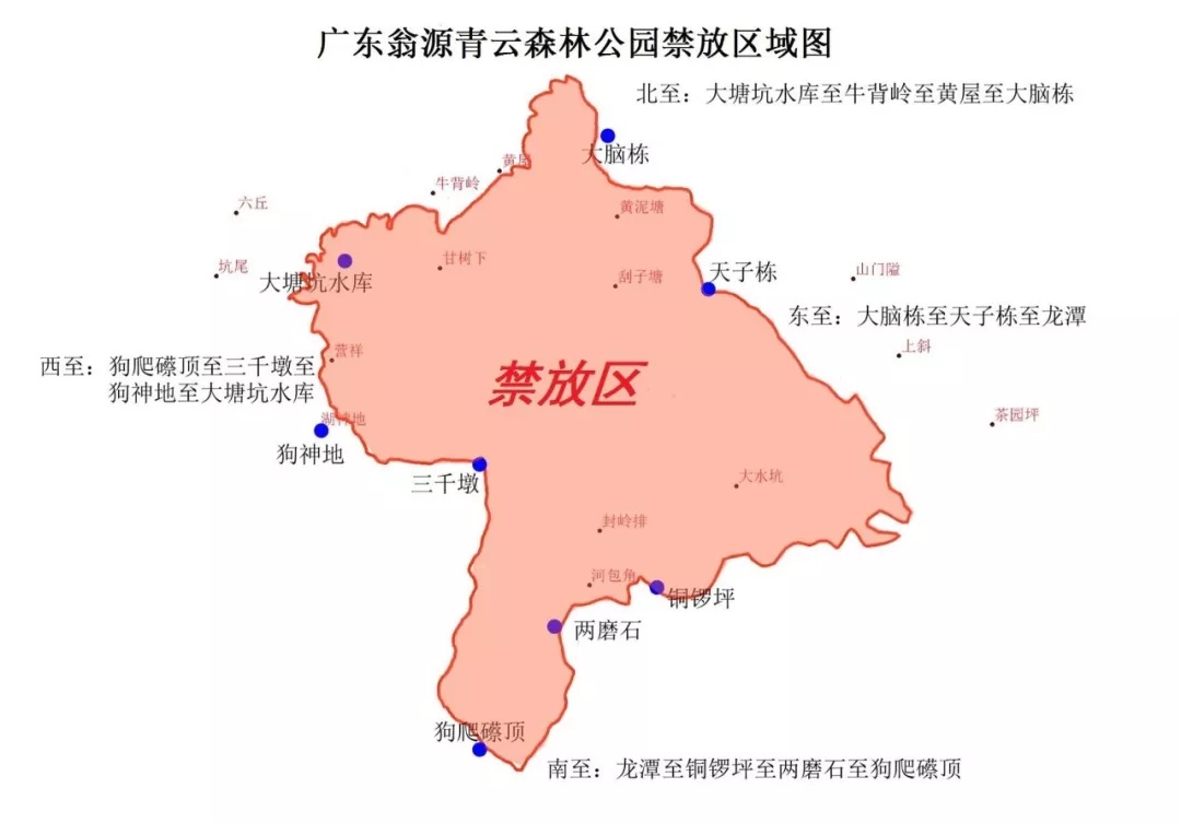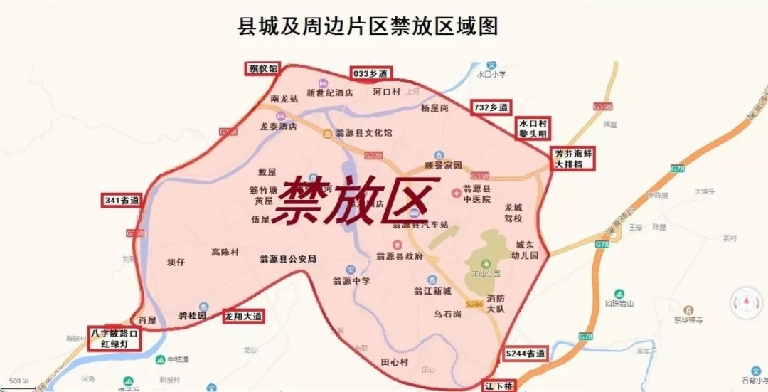 一、禁止生产、销售、燃放烟花爆竹区域。1.县城龙仙区域。县城城区及周边农村,东至马山村傅屋组芳芬海鲜大排档,南至田心村江下桥(包含田心村),西至龙翔大道群陂村八字陂路口红绿灯(包含八字陂肖屋组),北至翁源县殡仪馆。2.翁城镇华彩工业园区域。华彩园区边界外200米范围内,东至泉坑村委谢屋村小组,南至富陂村委18、19、20村小组,西至富陂村委15、16、17村小组,北至新江镇新展村委旱田张村小组。3.龙仙镇青云山区域。青云森林公园:东至天子栋,南至狗爬礤顶,西至大塘坑水库,北至大脑栋。青云山省级自然保护区:东至雷公礤(连平交界),南至主人山,西至天子栋天水,北至茶坑尾。4.坝仔镇半溪市级自然保护区。东至张江营村小组,南至石角围村小组,西至华京营地,北至长淮电站。