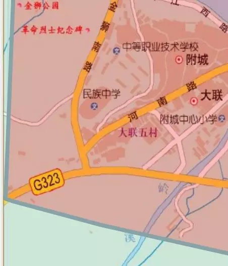 2、古市三叉路口、新国道G323线、零公里三叉路口、雄东路、金刚河、浈江河南雄大桥、雄中路、雄南路所围成的区域。