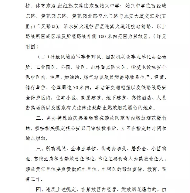 一、禁止制造、销售、燃放烟花爆竹的范围