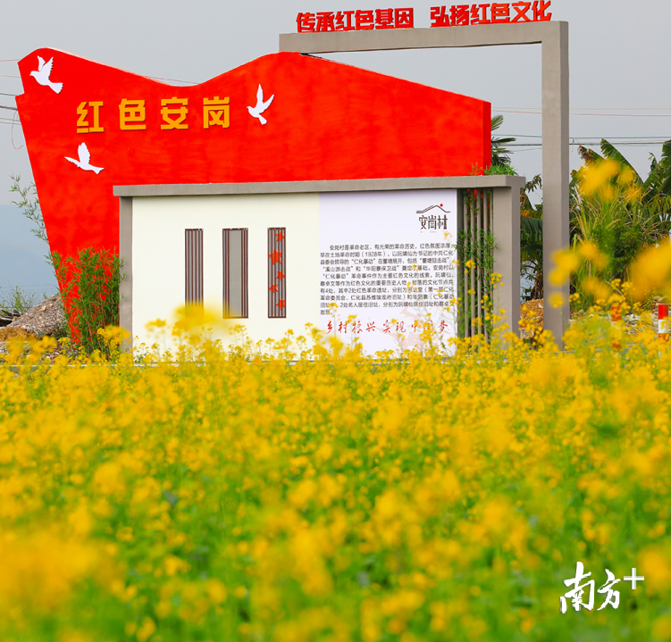 近年,安岗村被评为省级红色文化示范村,拥有思诒堂、阮啸仙故居、蔡卓文故居等红色建筑。与此同时,安岗村将油菜产业作为农业产业结构调整的重点项目来抓,大力引导农业经营主体和贫困农户种植油菜,通过油菜花海的打造,建设美丽乡村,助力精准扶贫,持续推动生态农业与全域旅游融合发展,最终实现农民增收与美丽乡村共同发展的双赢。