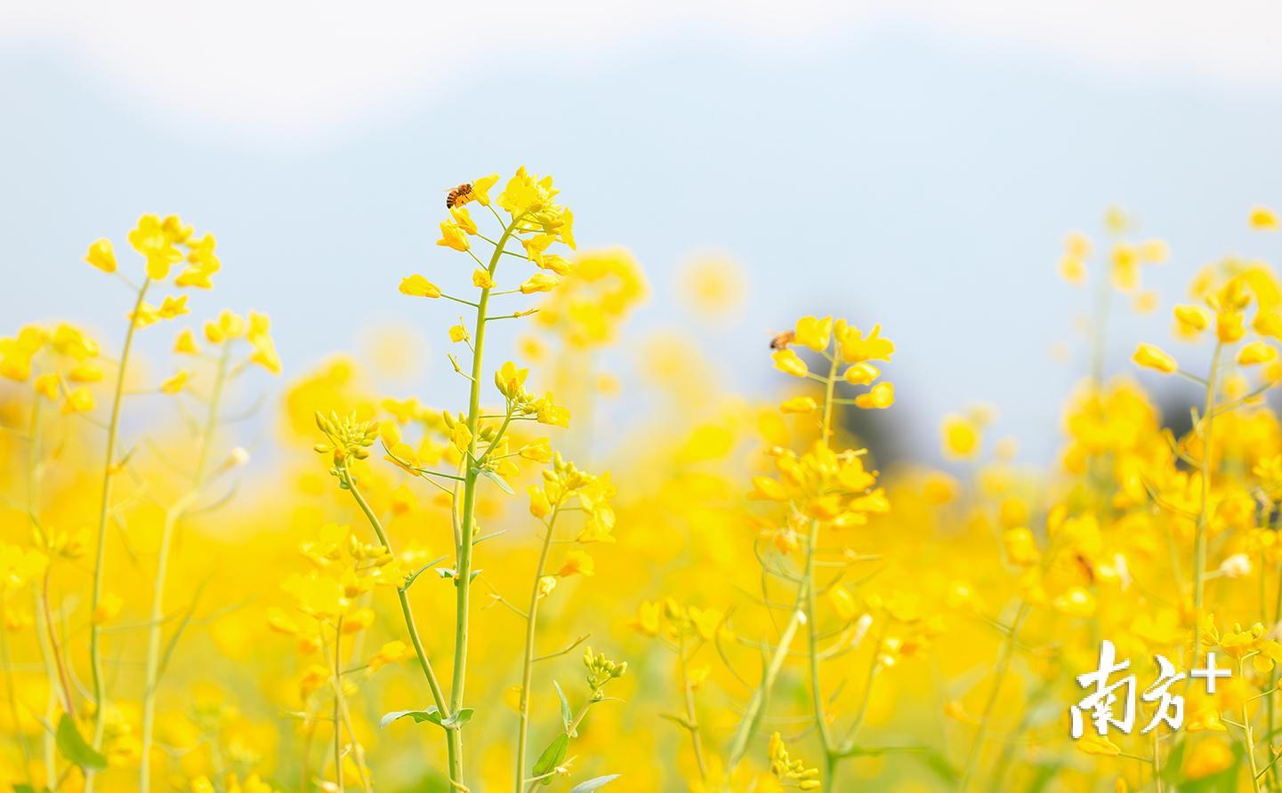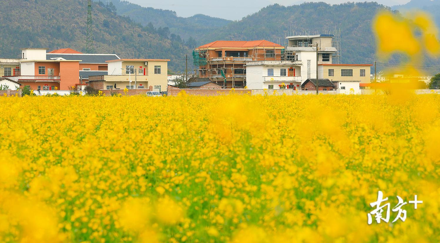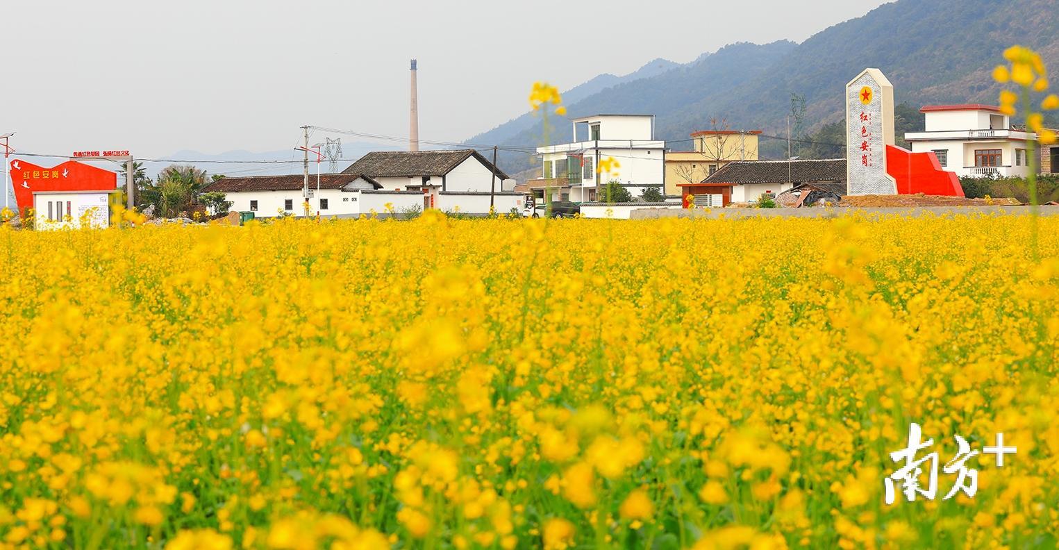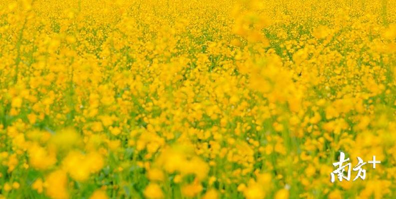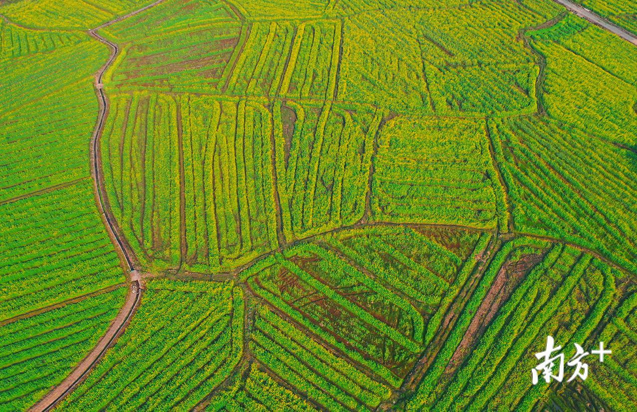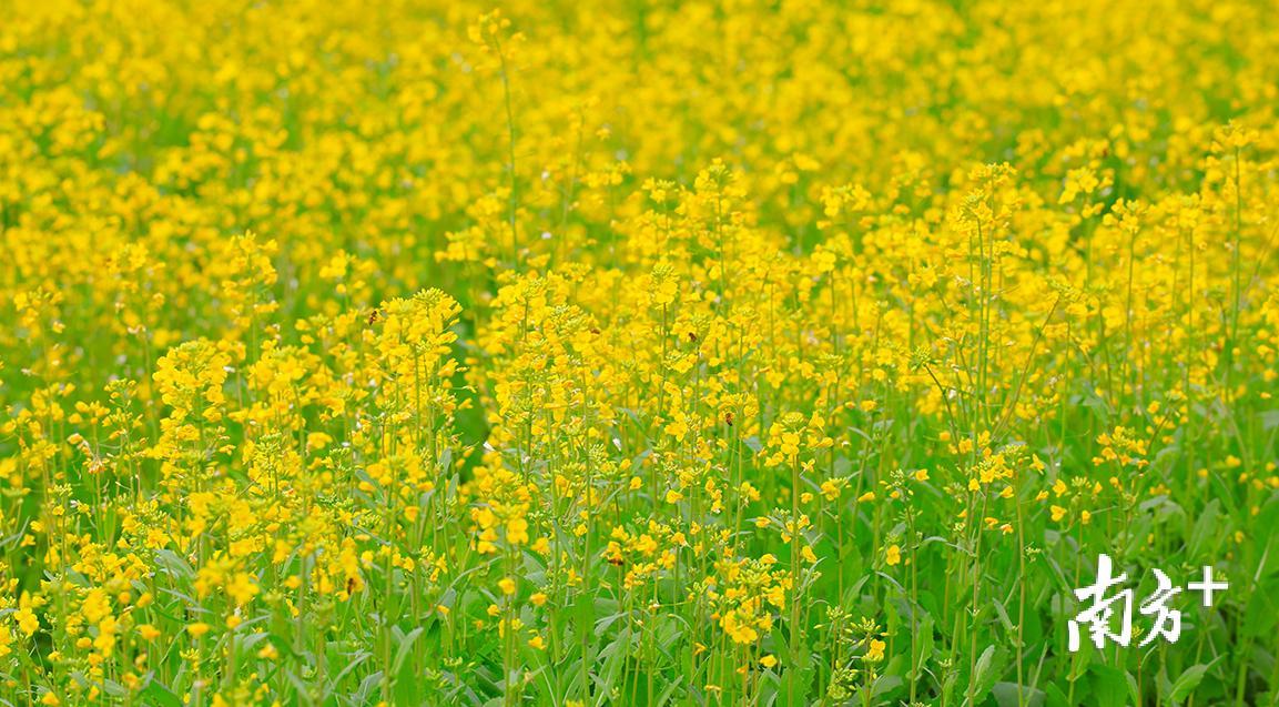 春天如期而至,韶关仁化县安岗村100余亩油菜长势喜人,丰收在望。