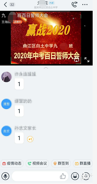 “没有了响彻校园的铮铮誓言,没有了老师家长们的现场加油助威,但特殊时期的线上百日誓师却更加触动每个学生的心灵”,韶关市曲江区白土中学校长肖宇杰说。
