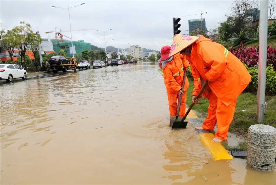 为排出城市积水奋战在大街小巷,