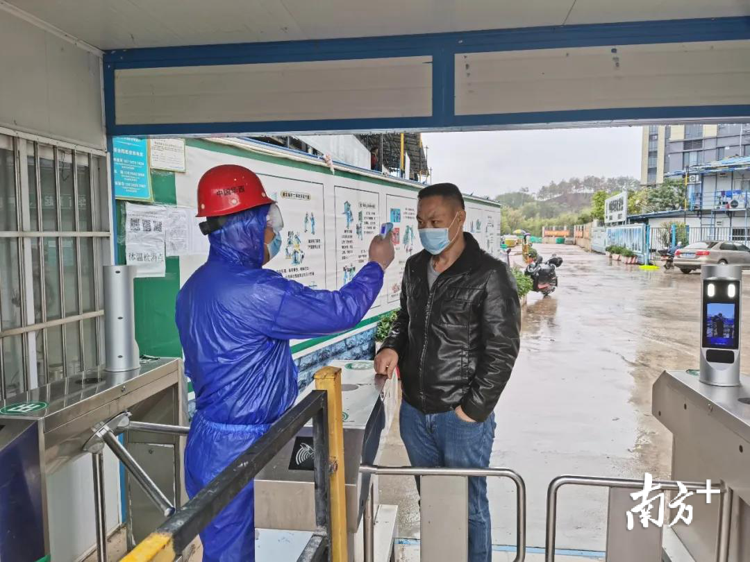 严格执行门禁制度,在观察期间严禁工友随意离开工地,生活及其他个人物品由项目物资筹备组统一采购。工地还会对进出工地的人员进行体温测量与信息记录,包括来访人员的姓名、身份证号码、健康状况、近期旅行史等。另外,工地出入口还增设了专人测温、口罩更换、消毒等环节,减低病毒传播风险。