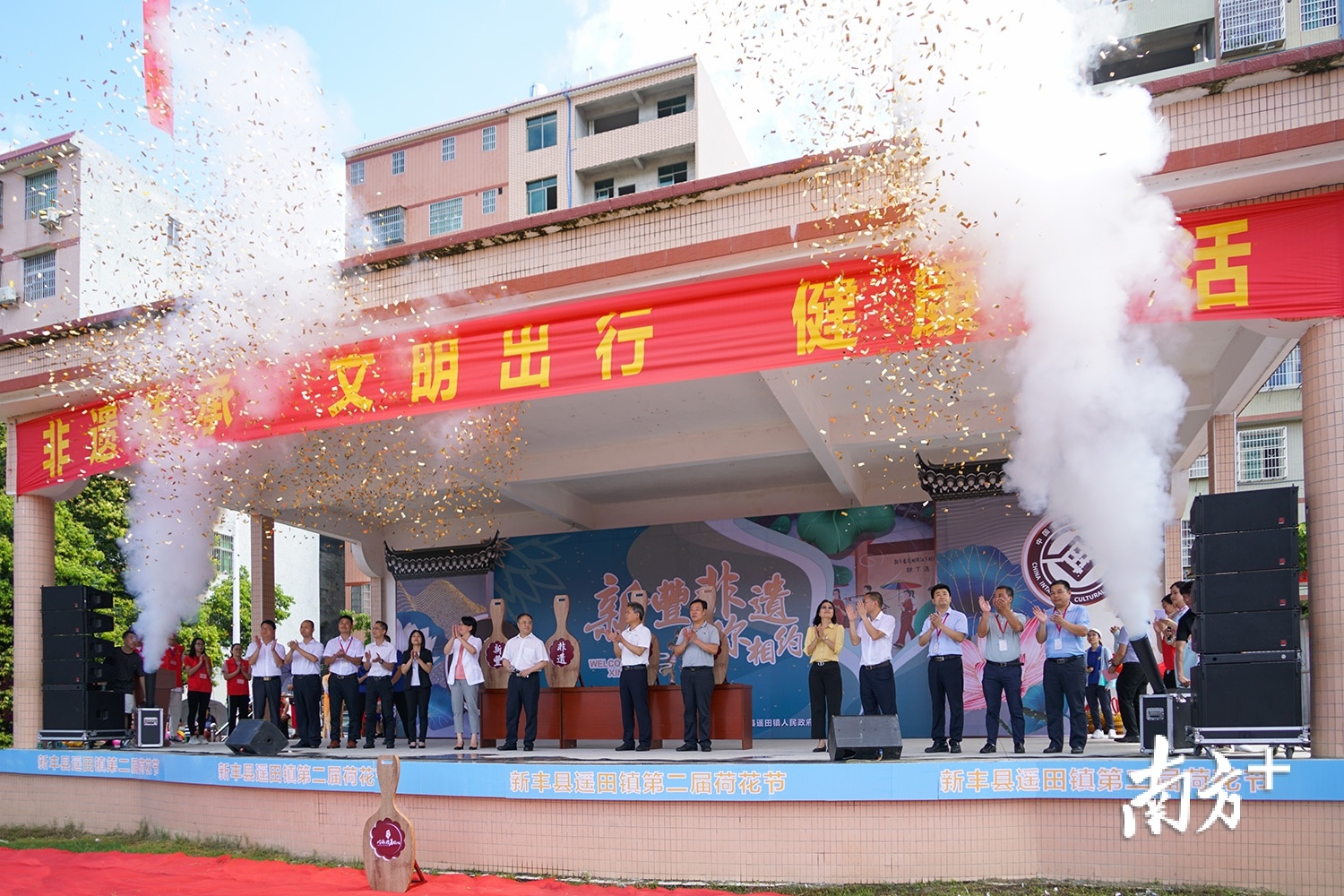 此次活动围绕“新丰非遗、荷你有约”主题,以新丰本土非遗资源为主线,结合文化、旅游、农业等多元优势,以“映日荷花别样红”的遥田镇千亩何塘为背景,为当地群众和外地游客奉上了一场融汇展演、展销、展览、巡游的“非遗文化盛宴”,不仅全面展示了新丰的地方文化和风土人情特色,进一步促进文旅体农多方融合,还将更有力地推动“传承文化遗产、倡导健康出行”活动深入开展。