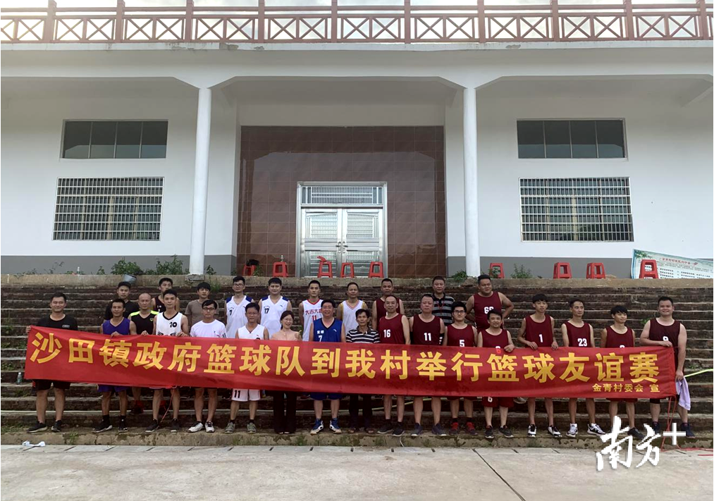 “好,我们羸啦!”近日,韶关新丰县沙田镇金青村文化活动广场热闹非凡,村民群众的欢呼声、呐喊声此起彼伏,这是该村篮球爱好者与镇政府业余篮球队在落成不久的村篮球场上举行篮球友谊赛。