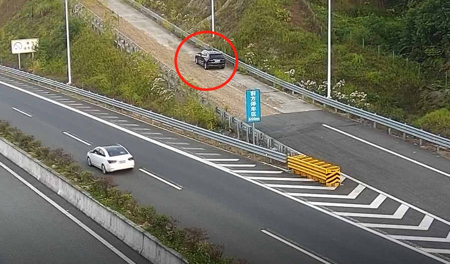 2020年7月23日傍晚19时许,在武深高速公路的韶关段,韶关交警发现一台黑色小轿车径直开到长下坡避险车道上并停下。