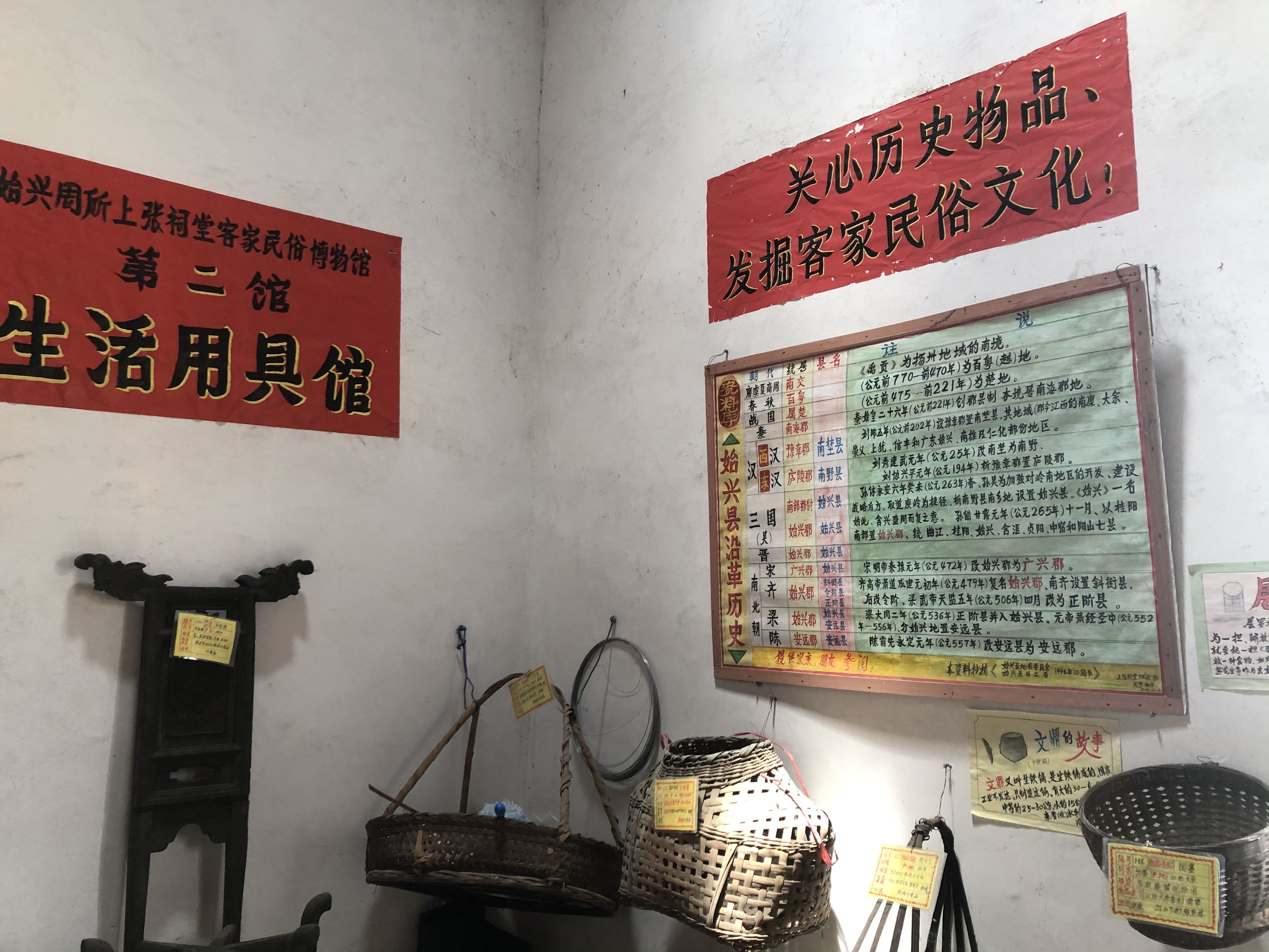 随着时代的变迁,技术的发展,很多老物件逐渐消失,被现代化用品所替代。在始兴顿岗镇周所村上张祠堂内有一间客家风俗民间博物馆,收藏着各种不同年代的老物件。人们在这里追寻着旧时的生活印记,感受社会发展的变迁。