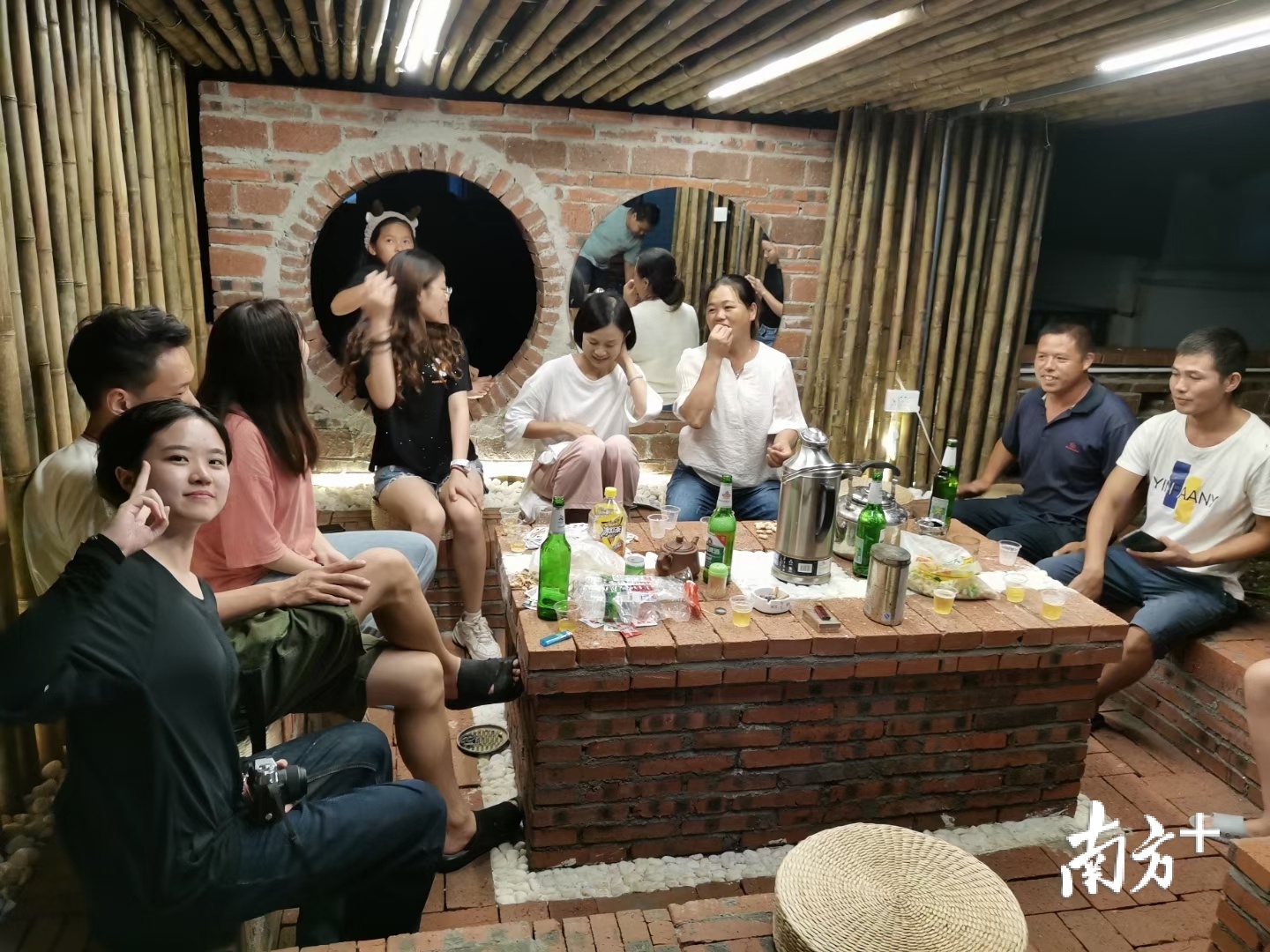 在村口的池塘边,贡柑园、沙田柚园硕果累累,游客三三两两在采摘、品尝。“水分足,好甜!”“我要摘三箱!”“我摘最大个的!”村民利用农家肥种植的柑橘,令游客兴奋不已。“以前都是亲朋好友来买,或者运到圩镇上去卖,现在多了游客来买,销路更好!”村民刘容舒告诉笔者。