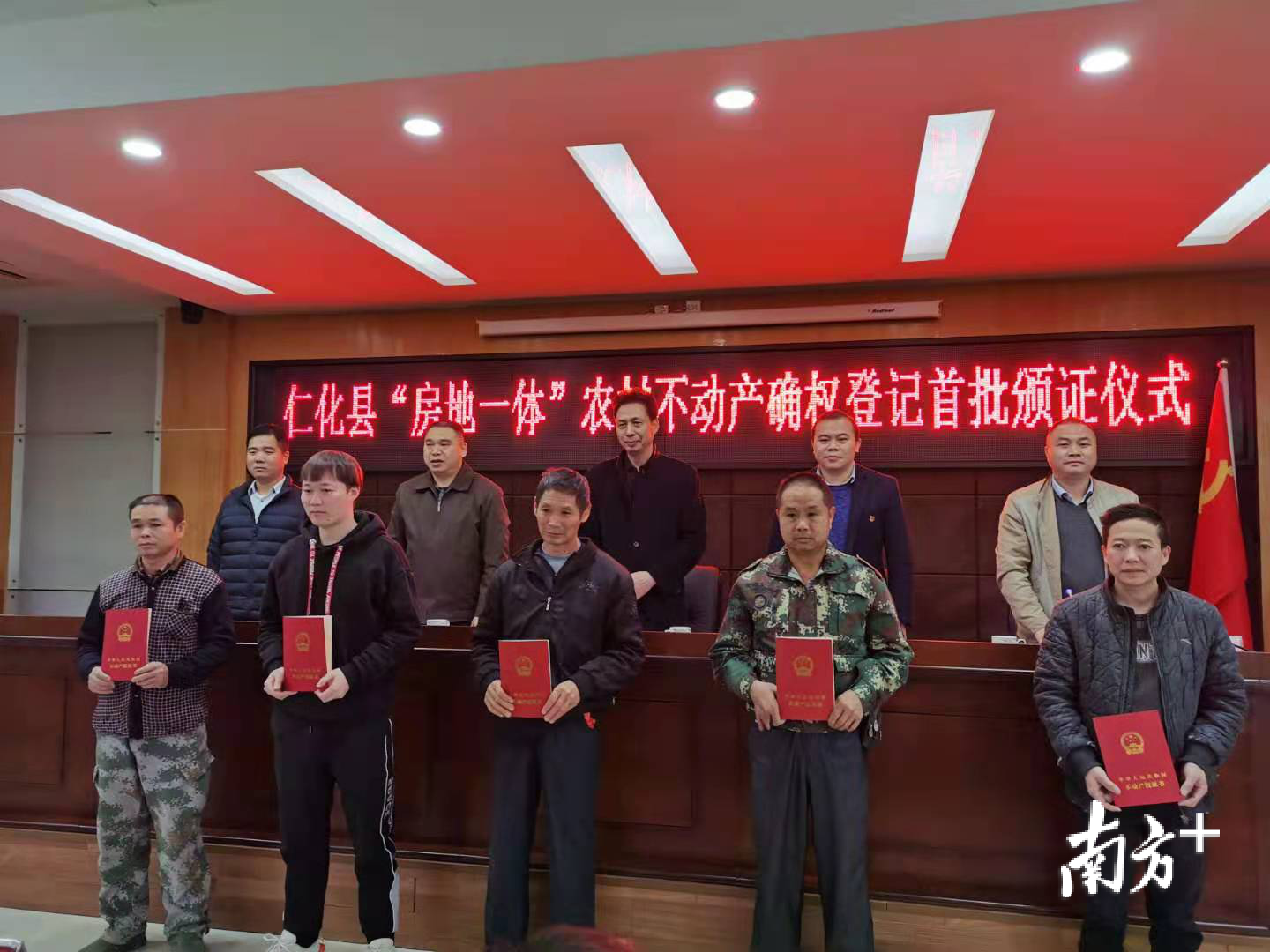 仪式上,长江镇莲河村河口村小组10位村民代表首次领到了农村房地合一的不动产权证书,预示着农村宅基地有了“身份证”,标志着仁化县农村房地一体宅基地和建设用地确权发证迈出了实质性的步伐。