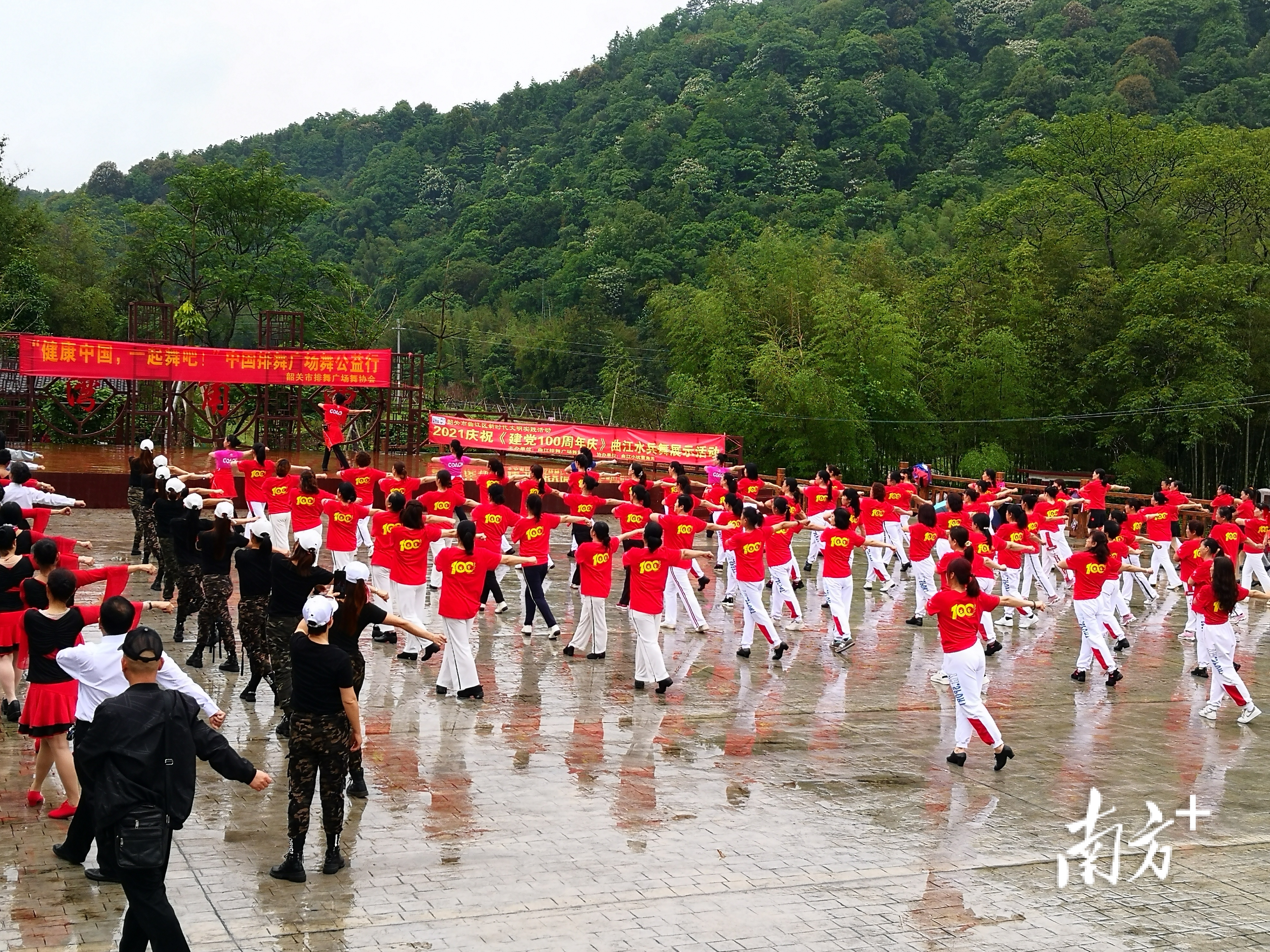 近日,为庆祝中国共产党建党100周年,韶关曲江区小坑镇联合韶关市排舞协会在小坑镇曹角湾开展全民健身活动,为党史教育活动增添了一抹红艳艳、暖浓浓的春日色彩。