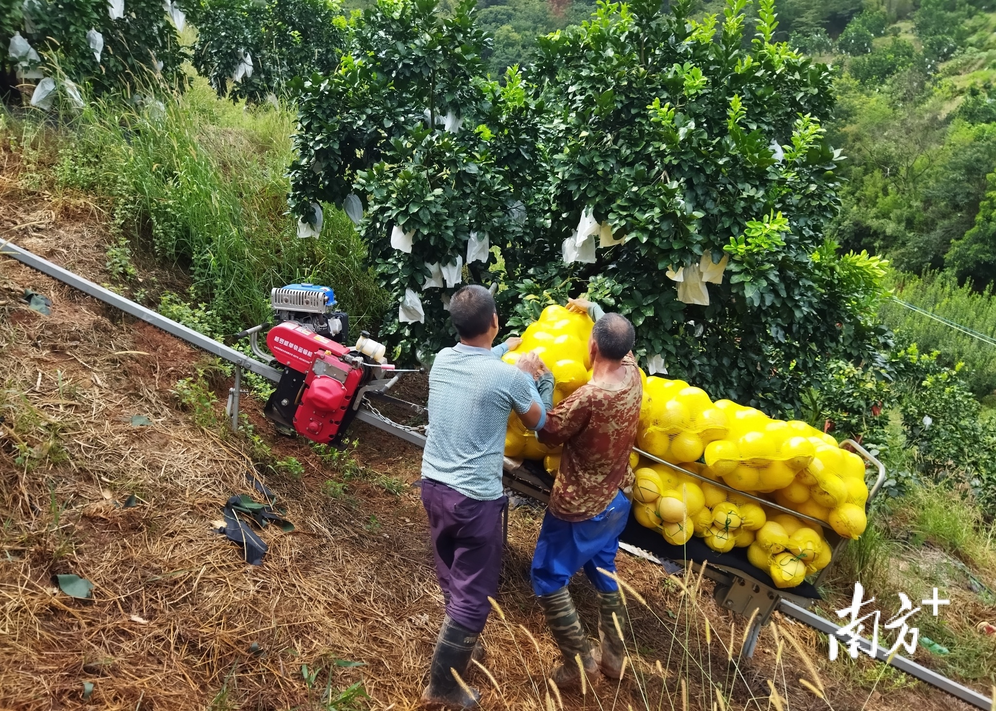 笔者走进果园,看到农户忙着采摘、运输,脸上洋溢着丰收的笑容。上千亩柚园里,主要种植长坝沙田柚,小部分红肉蜜柚。山上安装有智能水肥一体化节水设施、单轨运输机,果树下铺着长长的生物地膜,可以看见现代高质高效农业技术在这里得到广泛应用。据了解,仁化县国家现代农业示范区结合开展党史学习教育,以及“我为群众办实事”实践活动,今年继续支持引导该合作社实施新建山地单轨运输机、柚子深加工和冷库项目建设等。