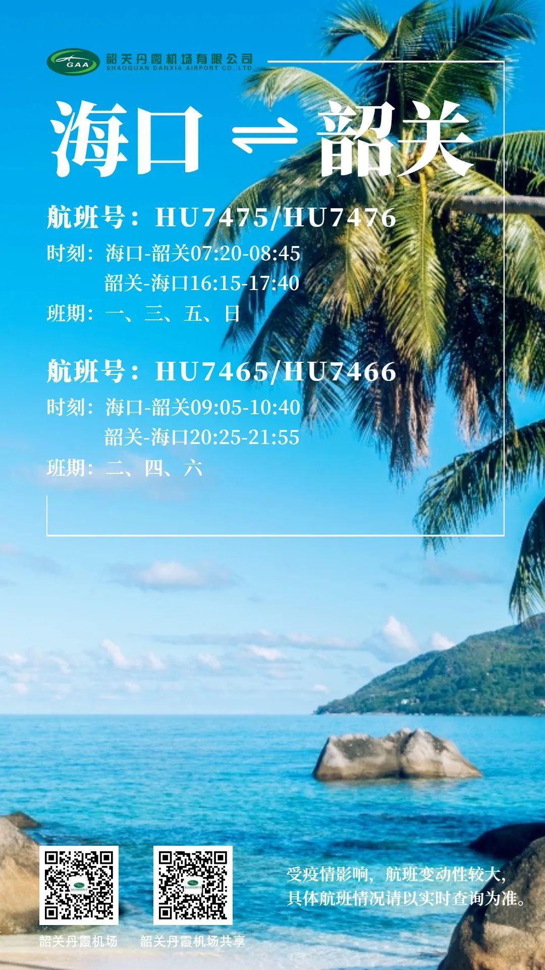 具体航班信息如下(韶关丹霞机场有限公司提醒,受疫情影响,航班变动性较大,具体执行以实时官方系统查询为准):