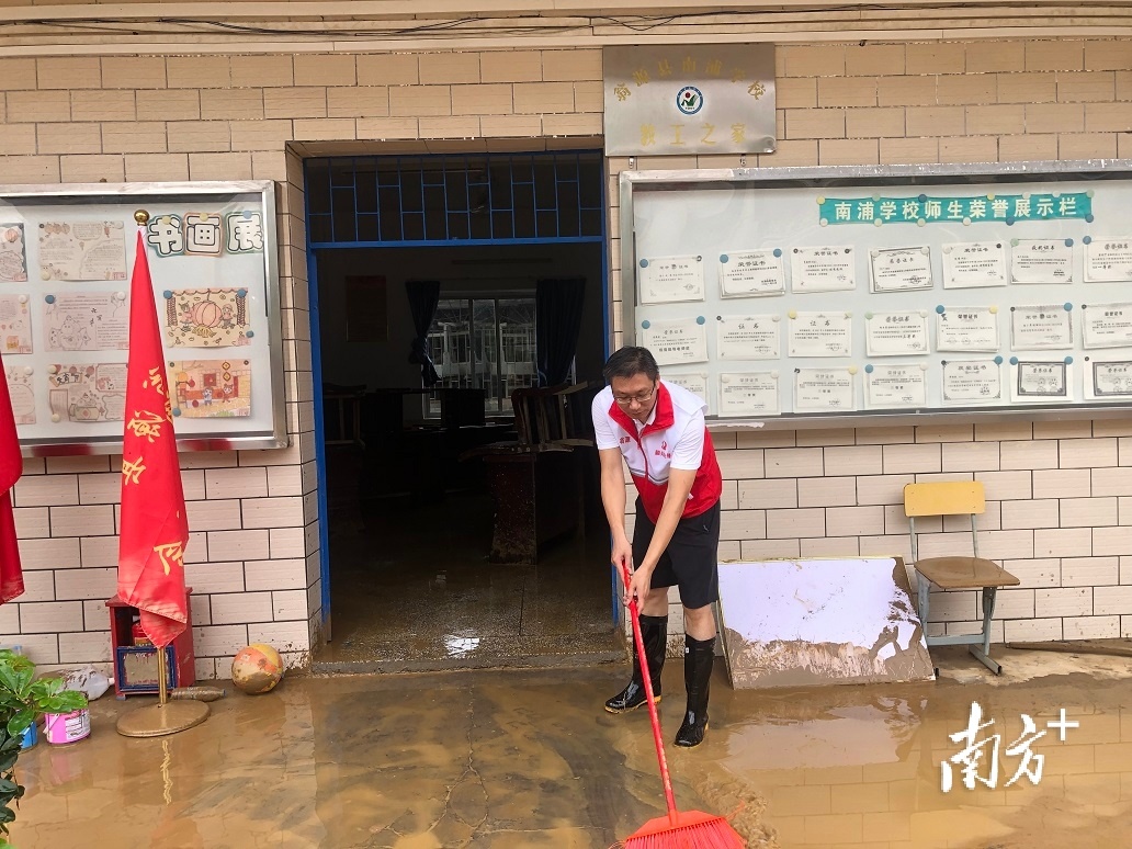 洪水退去后,南浦大拇指幼儿园的老师们迅速返岗,脚穿水鞋,手拿高压水枪和扫把全力清除堆积的淤泥。幼儿园负责人介绍,此次洪水淹过了园内的一楼窗台,课室桌椅和墙上的装饰物都受到浸泡,操场上铺设的地坪和娱乐设施等都损毁较严重,所幸园内118名师生及时得到转移,接下来需要重新购置相关的教学设施。