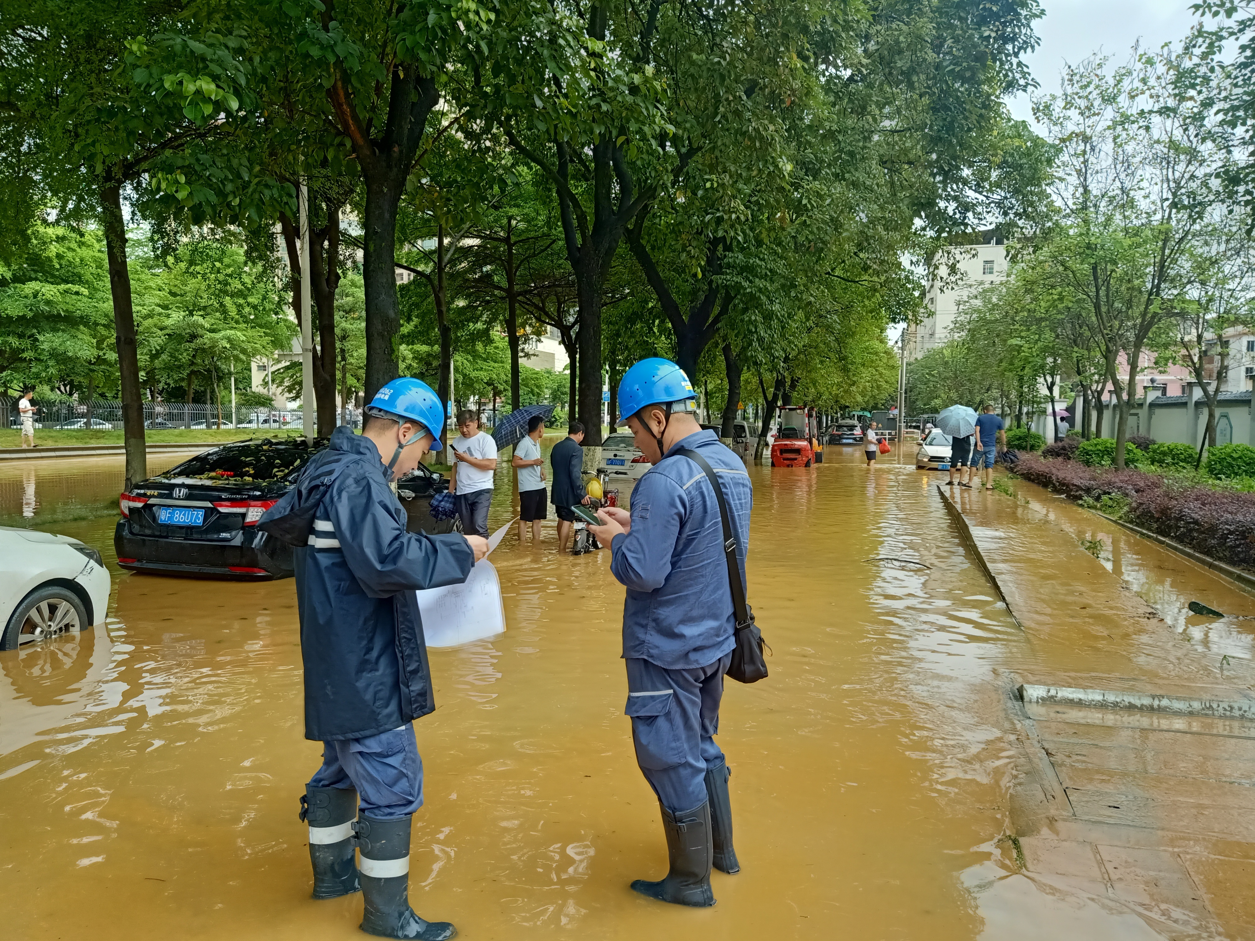 由于雨水持续,道路交通受阻,根据应急指挥中心要求,在确保应急抢修人员安全的前提下,该局人员及时处置隐患设备和线路,协助政府应急相关部门,对受困人员进行救援。