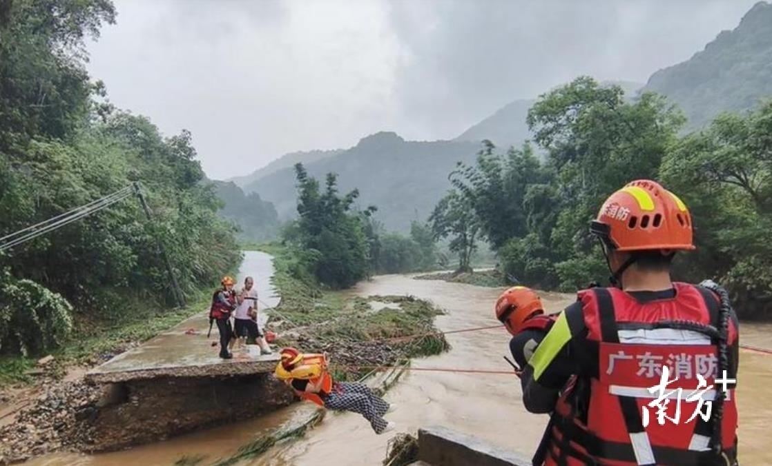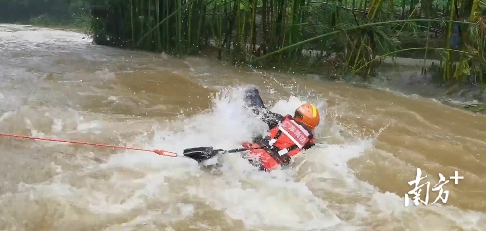 湍急的洪流,对岸两名被困老人焦急地等待着,一名消防救援人员,身系安全绳做好准备,毫不犹豫地扎进激流中,以自由泳的姿势奋力游向对岸……这是6月19日午后发生在韶关市新丰县马头镇横岭村河面上的惊险一幕。