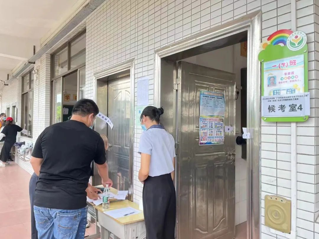 8月20日,2022年“广东兜底民生服务社会工作双百工程”社工面试(仁化考区)在县田家炳小学考点顺利举行。县领导叶剑斌到考点巡考。