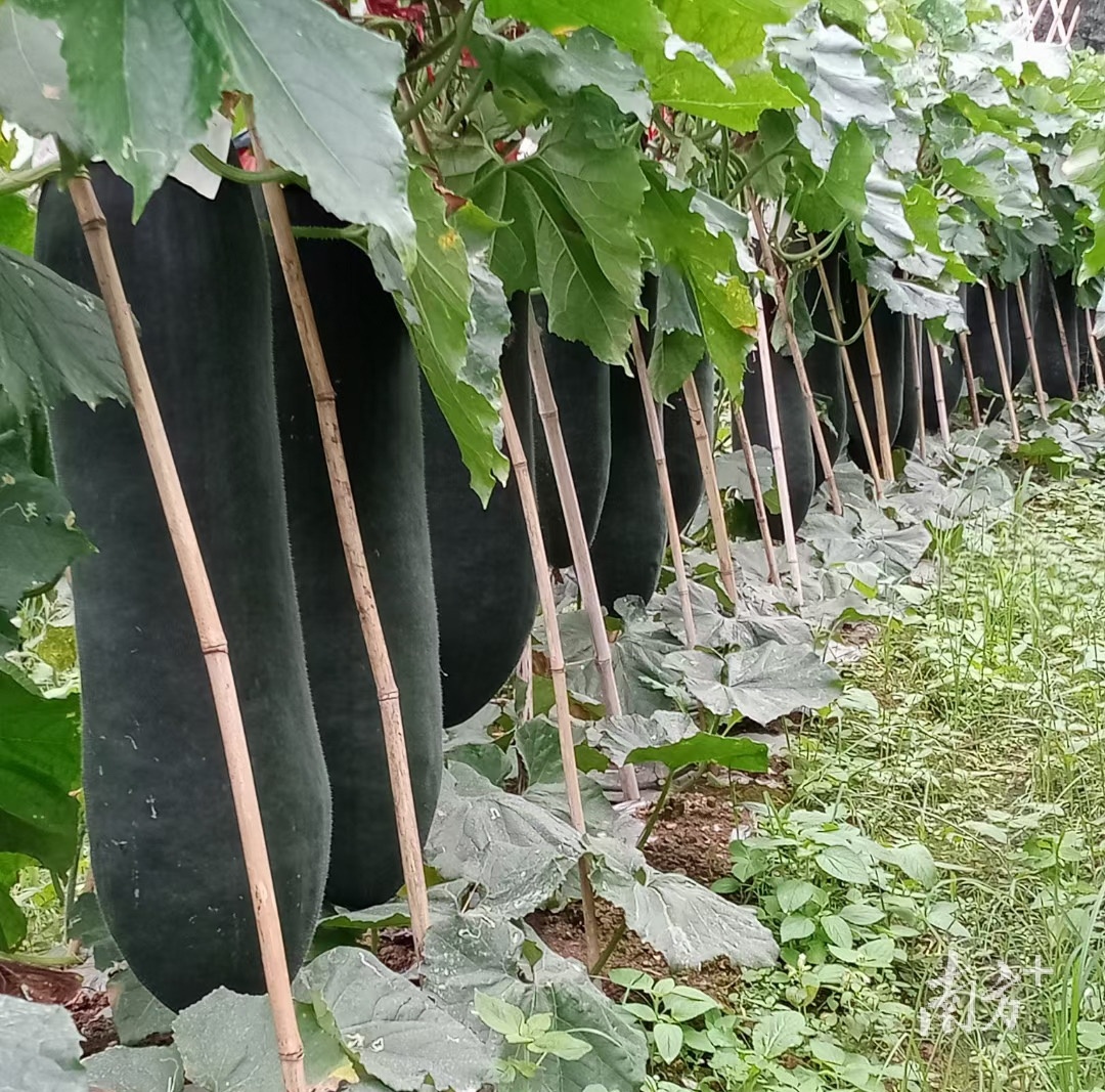 在种植技术方面,铁皮冬瓜在竹架的支撑下吊着长大,不与地面直接接触,既避免了铁皮冬瓜“白肚皮”现象的产生,又有利于铁皮冬瓜均匀采光,结出的瓜营养丰富、个头大、颜值好,具有耐储运、保质期长的特点。