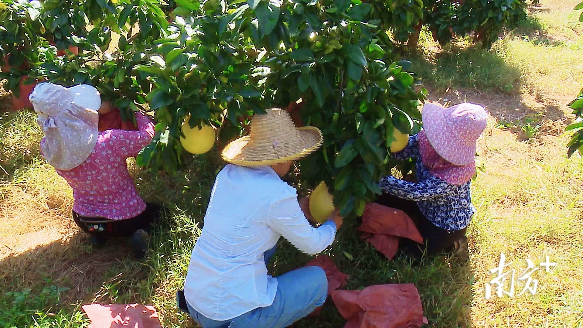 近日,笔者走进碧鑫果园,一颗颗圆鼓鼓、沉甸甸的蜜柚已经挂满枝头。果农们穿梭林间,忙着采摘成熟的蜜柚,一派丰收的喜人景象。“这几天不断有客商前来收购蜜柚,得抓紧时间采摘。”尽管汗流浃背,但大家有说有笑,充满了丰收的喜悦。