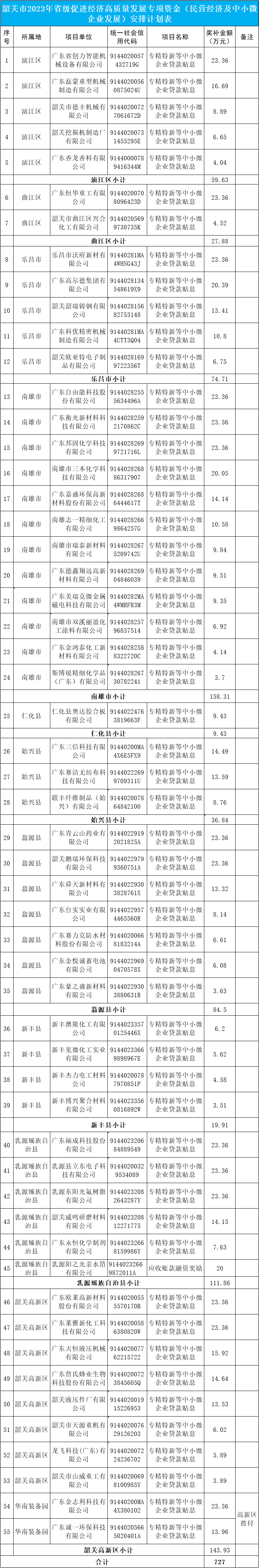 近日,韶关市工业和信息化局发布《关于下达韶关市2023年省级促进经济高质量发展专项资金(民营经济及中小微企业发展)的通知》(下称《通知》),经征求有关部门意见、局党组会议审议、项目公示、市政府审批等程序,确定对广东省创力智能机械设备有限公司等54家企业安排贷款贴息补助资金707万元,对乳源阳之光亲水箔有限公司安排应收账款融资奖励资金20万元。