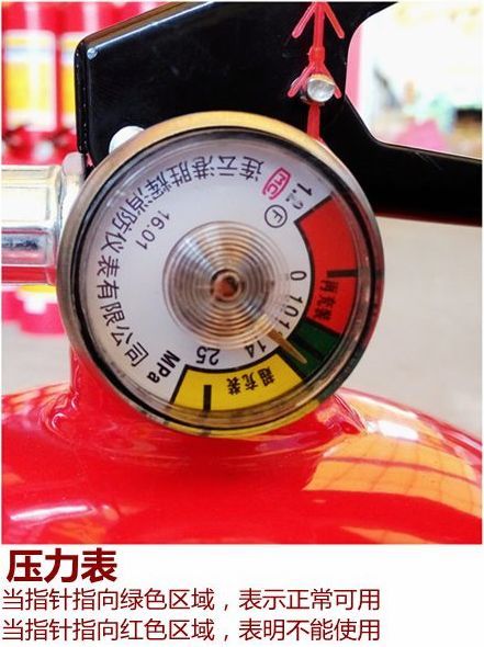 便携式灭火器自带压力表,一般情况下压力表上有三种色区。