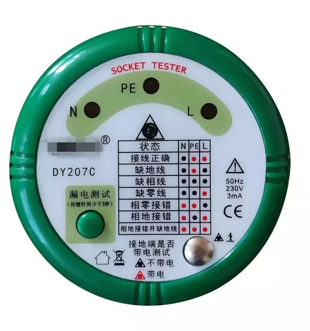 使用方法:将其插在家中各处插座孔,对照说明书和指示灯,即可迅速测试出家里的线路接地是否良好、零火线是否接正确、漏电保护开关是否有效。