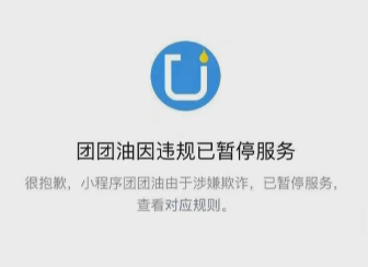 于是,罗先生便叫上家人朋友一起拼团。支付1200元后,小程序显示拼团成功。可到了11月13日点开小程序时竟发现,“团团油”小程序竟被封号了。