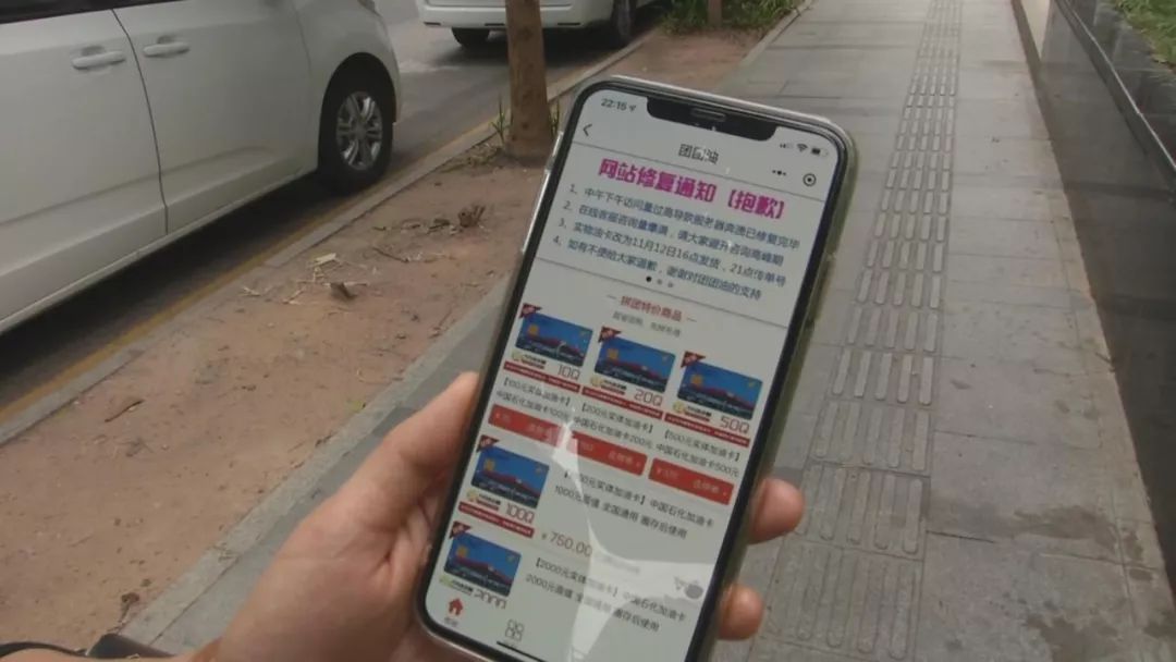 “我们购买了之后因为购买的人太多,双11当天购买的这些卡就没有处理,就没有发出来,然后我这一直显示拼团成功但是一直没有发卡,直到11月13日就是昨天下午6点,他这个团团油的小程序就直接显示关闭,然后我们就是卡也购买了钱也退不了。”