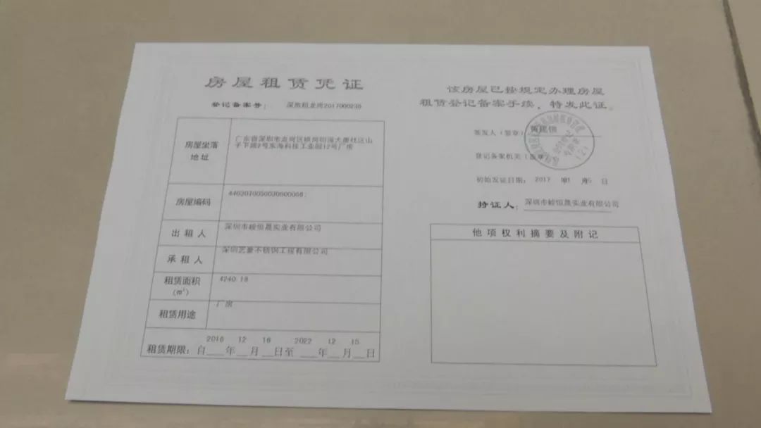 接着,记者去到工业园管理处查询。管理处提供的租赁合同显示,从2016年12月开始,园区内12号厂房就一直由艺豪不锈钢工程有限公司租用。