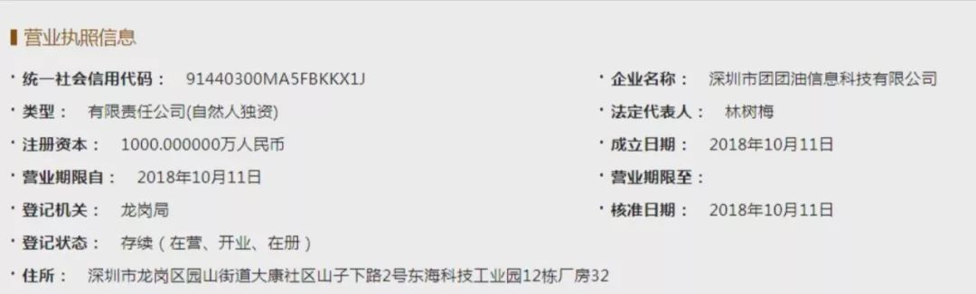 随后,记者在“团团油”微信小程序上查询到其所属公司为“深圳市团团油信息科技有限公司”。
