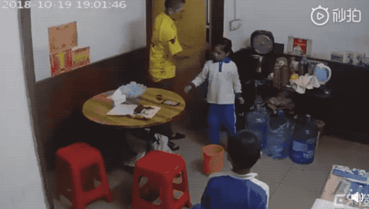 而一旁的男孩仿佛也是对此场景见怪不怪