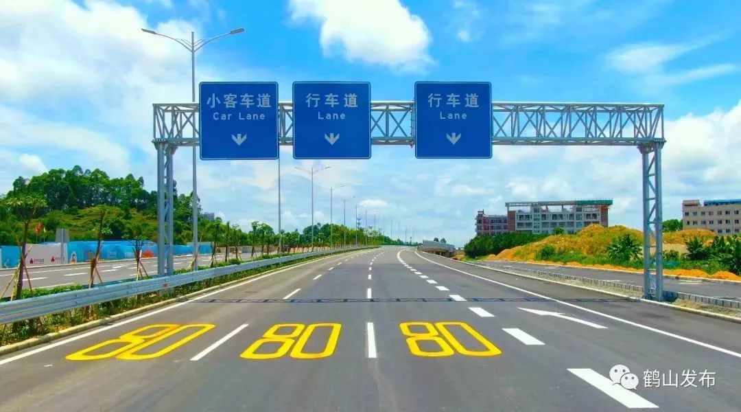 全路段还设置了多处交通指示路牌,在途经居民区的路段设置了隔音壁,在江门大道跨线桥侧面标示了5米的限高牌。