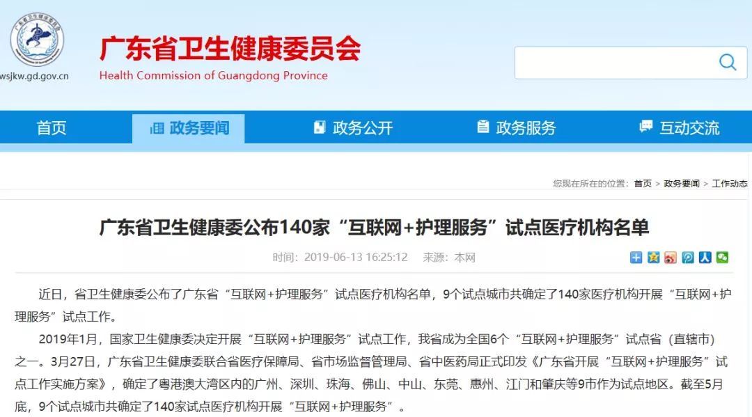 近日,《广东省开展“互联网+护理服务”试点工作实施方案》(以下简称《方案》)正式发布。