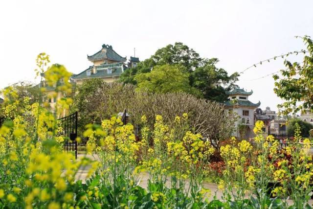 每到春天油菜花,在开平总会抢尽风头。开平的很多旅游景点都种满这种花,历史悠久的开平碉楼被大片的油菜花田围绕着,满眼金色,流光溢彩,美不胜收。