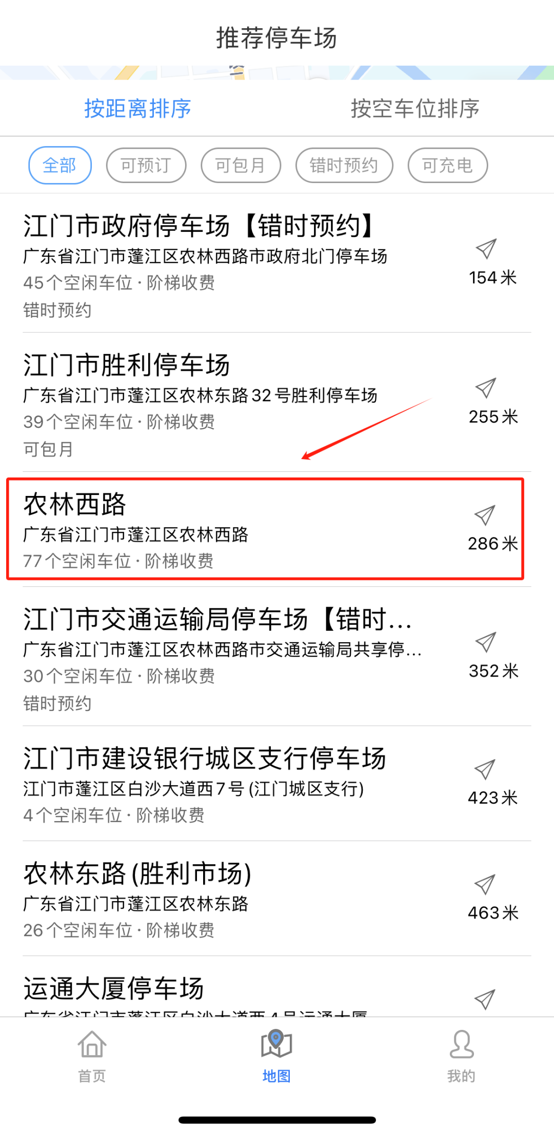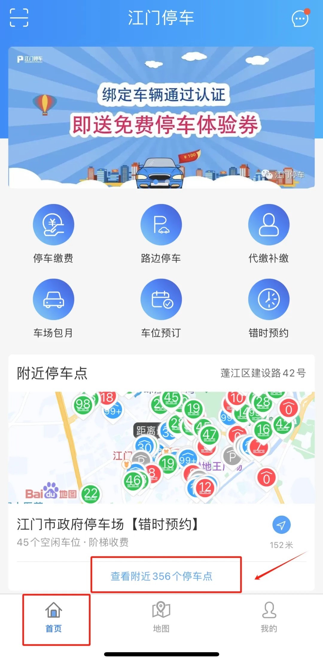 第二步:点击首页“查看附近停车点”。