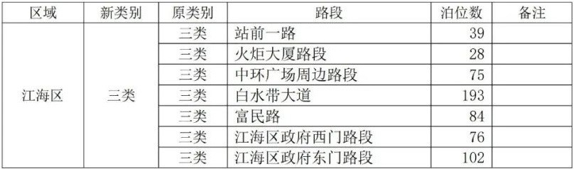 据了解,此次路边泊位收费类别调整,是根据江发改价格〔2019〕894号、〔2020〕448号、〔2021〕243号“为保障停车需求的变化,路边泊位收费路段类别每年可结合江门市智慧停车引导系统收集的车位周转率数据及其他方面情况进行适当调整”的机制而进行,旨在进一步提高车位周转率和利用率,更好地缓解江门城区停车难问题。