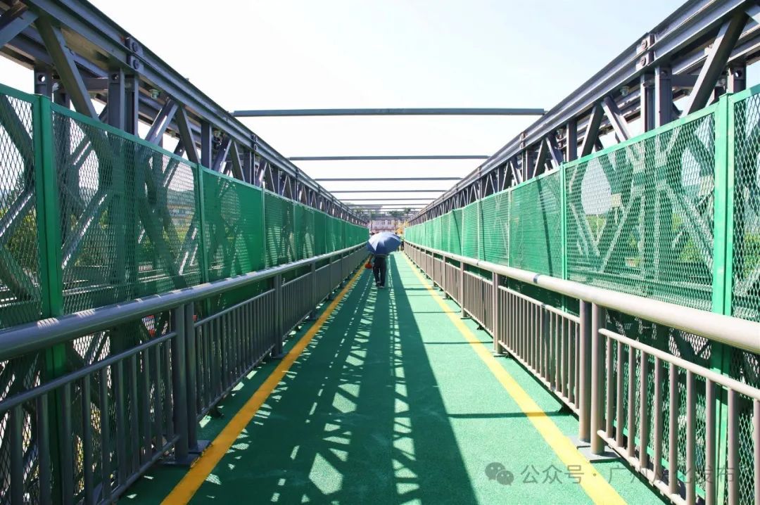 如今,从化区第五中学人行天桥于2024年10月21日完成了建设并通过了初步验收。这座人行天桥结构形式为贝雷梁,主桥总长42m,宽4.6m,总重量64.2吨。项目建成后,将有效提升市民群众和周边师生出行效率、改善出行体验。
