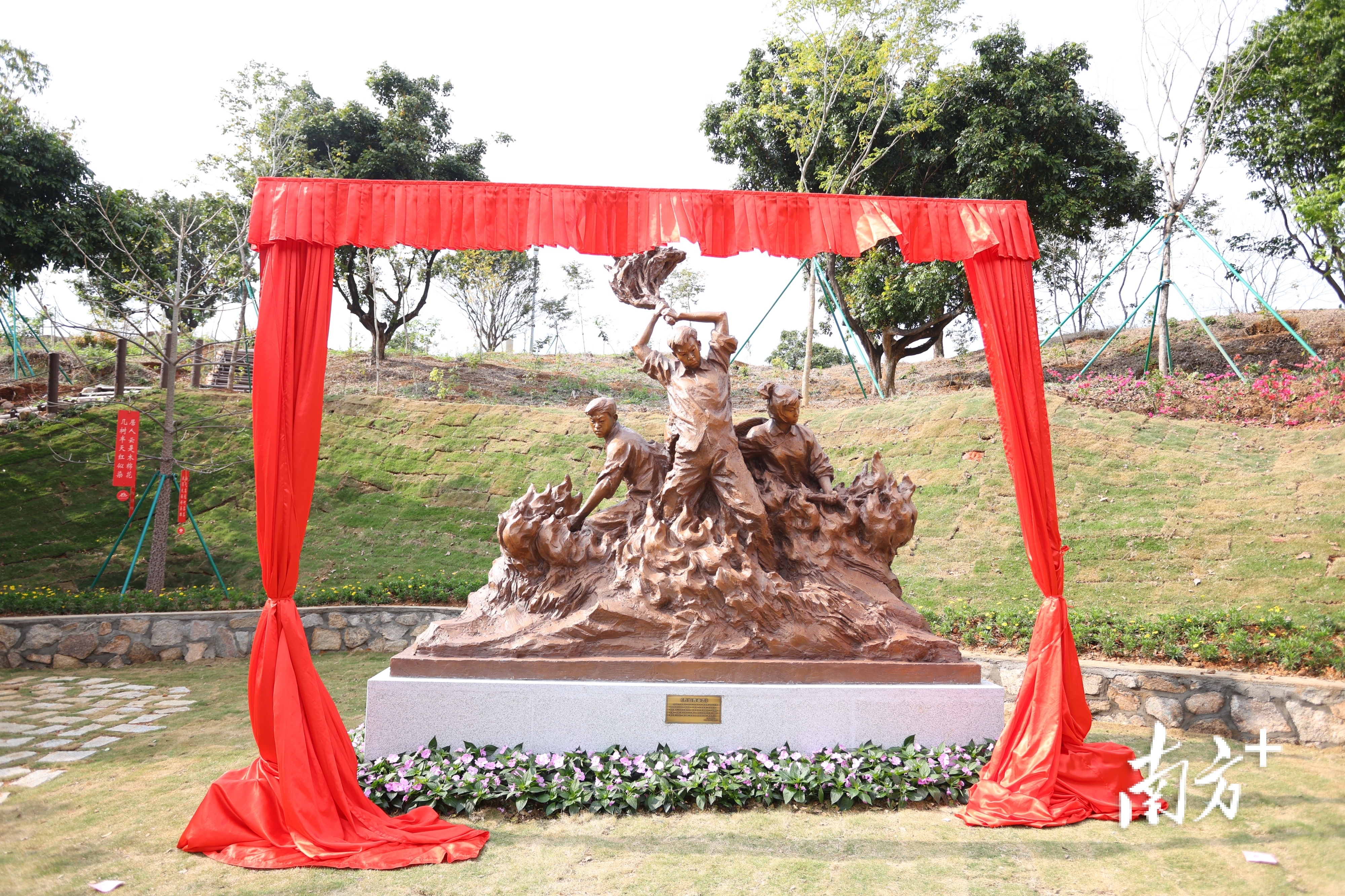 园中矗立着广州雕塑院国家一级美术师黄奔凯创作的《烈焰青春志》纪念雕塑,作品纪念的是1966年在从化大岭山林场扑火中英勇牺牲的刘桂东、梅锦康、严群英三位烈士。面对凶猛烈焰,三英雄为抢救国家财产,以青春之躯、无畏之姿与山火搏斗,献出了宝贵的生命。雕塑整体呈火炬状,象征着三英雄的精神熠熠生辉,激励后人。