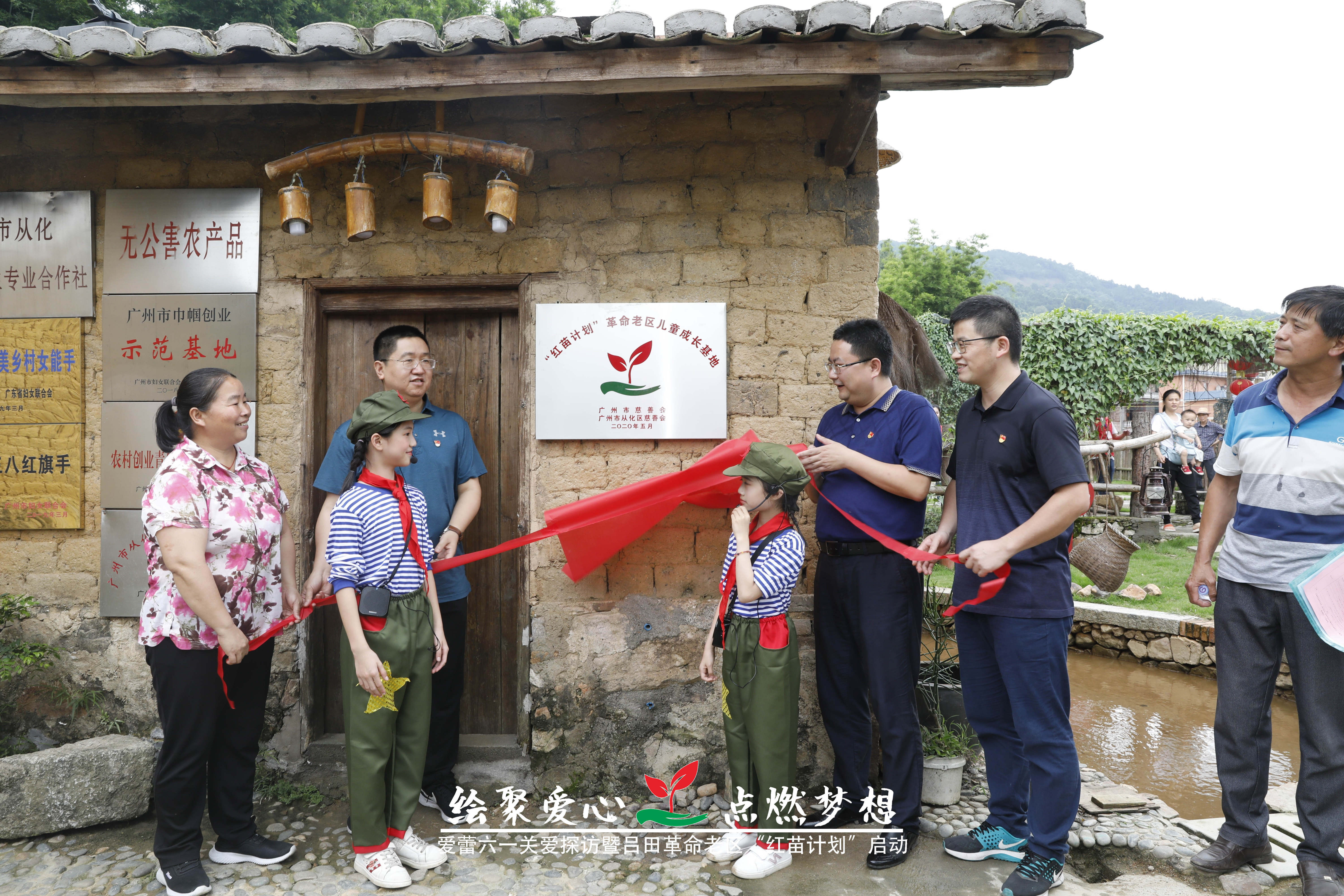 为配合穗北红色文化产业带的发展,在广州市民政局、广州市慈善服务中心与从化区民政局的指导下,广州市慈善会与从化区慈善会联合打造“红苗计划”革命老区儿童成长基地,重点针对革命老区的儿童,通过“红苗计划”进行红色基因传承。革命老区儿童成长基地依托丰富的红色资源,以实物、实景、实例、实事为载体,通过充分挖掘和开发红色资源,搭建红色文化研学基础,组织红色文化研学课程、寻访红色足迹等活动。通过“红苗计划”,培养小小讲解员讲好红色文化故事,传播红色文化。5月30日下午,在小小红色讲解员的牵引下,领导嘉宾们对“红苗计划”革命老区儿童成长基地进行了揭牌仪式。