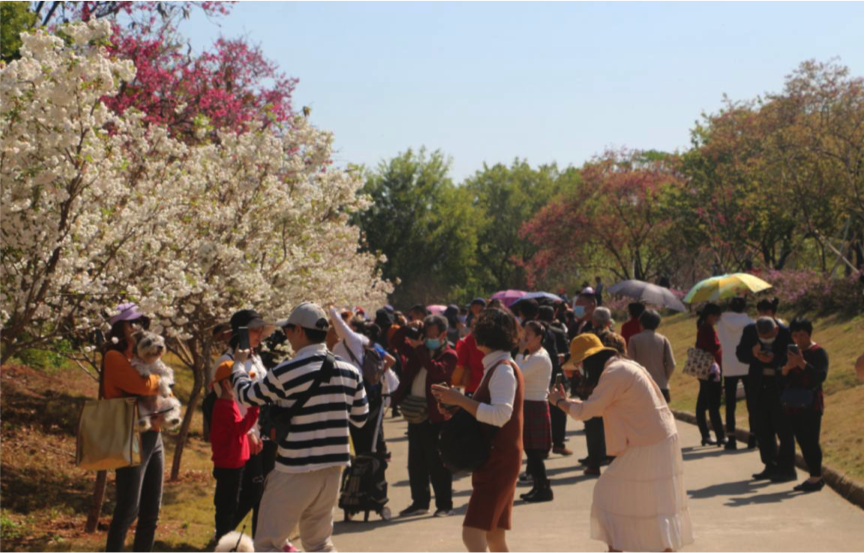 石门、流溪河国家森林公园实施门票八折优惠措施,景区年初二开始迎来客流高峰,石门国家森林公园最高峰一天接待游客8810人次,流溪河国家森林公园最高峰一天接待游客超6528人次。4A景区石门国家森林公园天池花海亮点纷呈,推出包括红花荷、油菜花、桃花等观赏,吸引游人如织;流溪河国家森林公园则推出迎春花展,游客可在玉兰大道观赏到合欢花、玉堂春、红花荷、金花茶等。另外,吕田镇鹰嘴桃花、油菜花以及良口镇联溪阿婆六茶花小镇等赏花网红点也是吸引游客的拍照热门地。