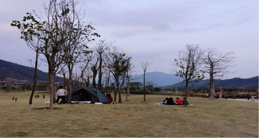 另外,不少公共文旅空间设施如新建绿碧道街口街的流溪御景一带和艾米稻香小镇(黎塘河)、良口镇生态设计小镇鸭洞河,以及温泉荔枝蜜公园、风云岭湿地及从都湿地公园等公共文旅设施成为新的“户外景点”,吸引不少市民游客特别是亲子家庭群体前往户外散步、游玩、野餐露营。