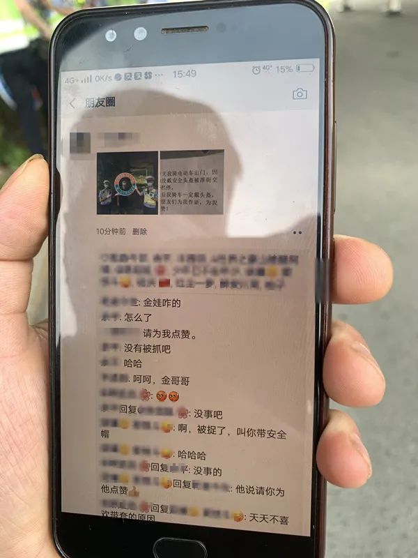 “今天我骑车出门没戴头盔,被厚街交警拦停。以后我骑车一定戴头盔,请朋友们为我作证,为我点赞!”