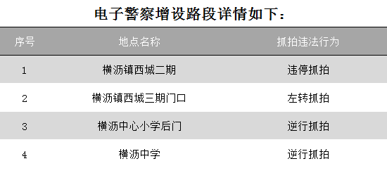 横沥交警大队在横沥镇西城二期、三期、横沥中心小学后门、横沥中学路段新增设了多个电子警察,分别对违停、左转、逆行、逆行等交通违法行为进行抓拍。