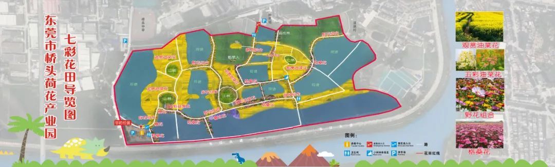 今年,桥头镇在荷花产业园打造了占地1000亩的“七彩花田”。相比于往年在桥头莲湖风景区栽种的300亩油菜花,今年的赏花地点、赏花范围、赏花品种、观赏方式都有较大变化。