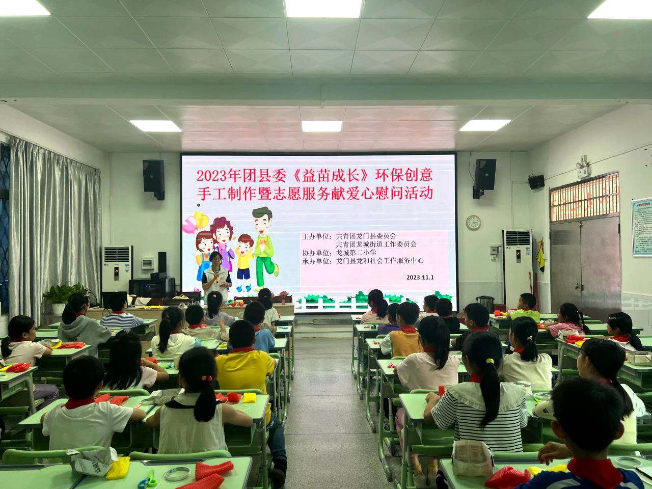 近日,一场生动有趣的“益苗成长”环保创意手工制作暨“情暖童心”志愿服务献爱心慰问活动走进龙门县龙城第二小学。