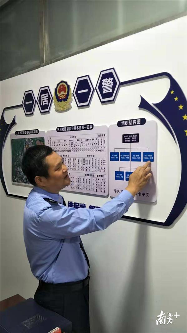“这个就是邻里纠纷多,这个小区有劳资纠纷,而这两个老些的小区就相对会好些,但消防和物业矛盾也时常会出现……”在惠阳三和社区的驻村(居)警务工作站里,驻村民警、三和派出所副所长文锦青指着社区“组织结构图”说起社区里的家长里短,如数家珍。