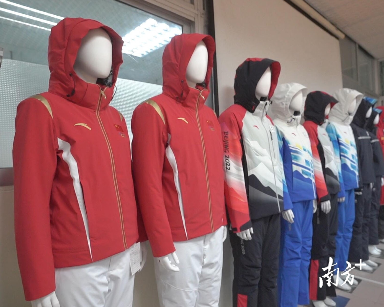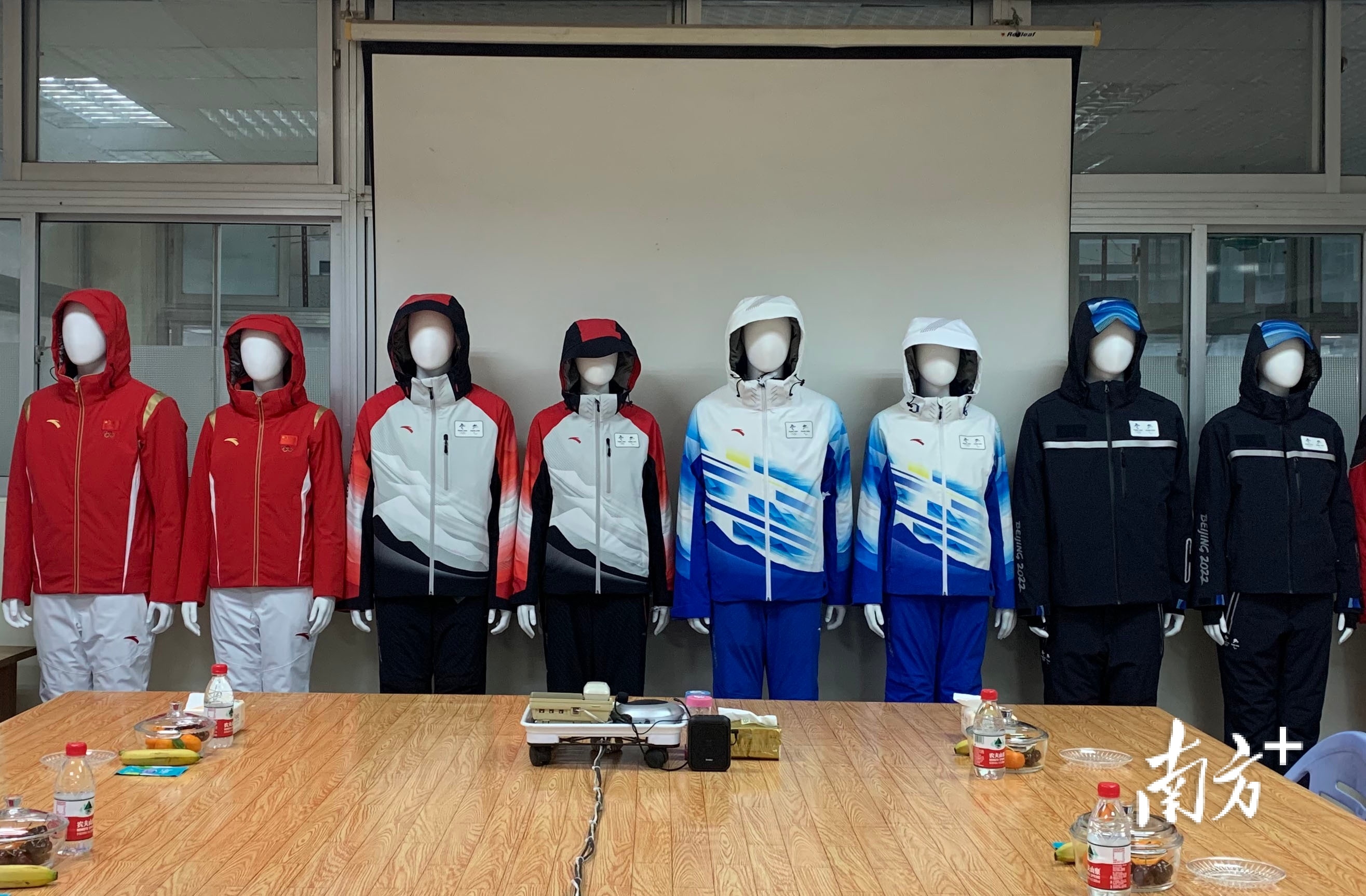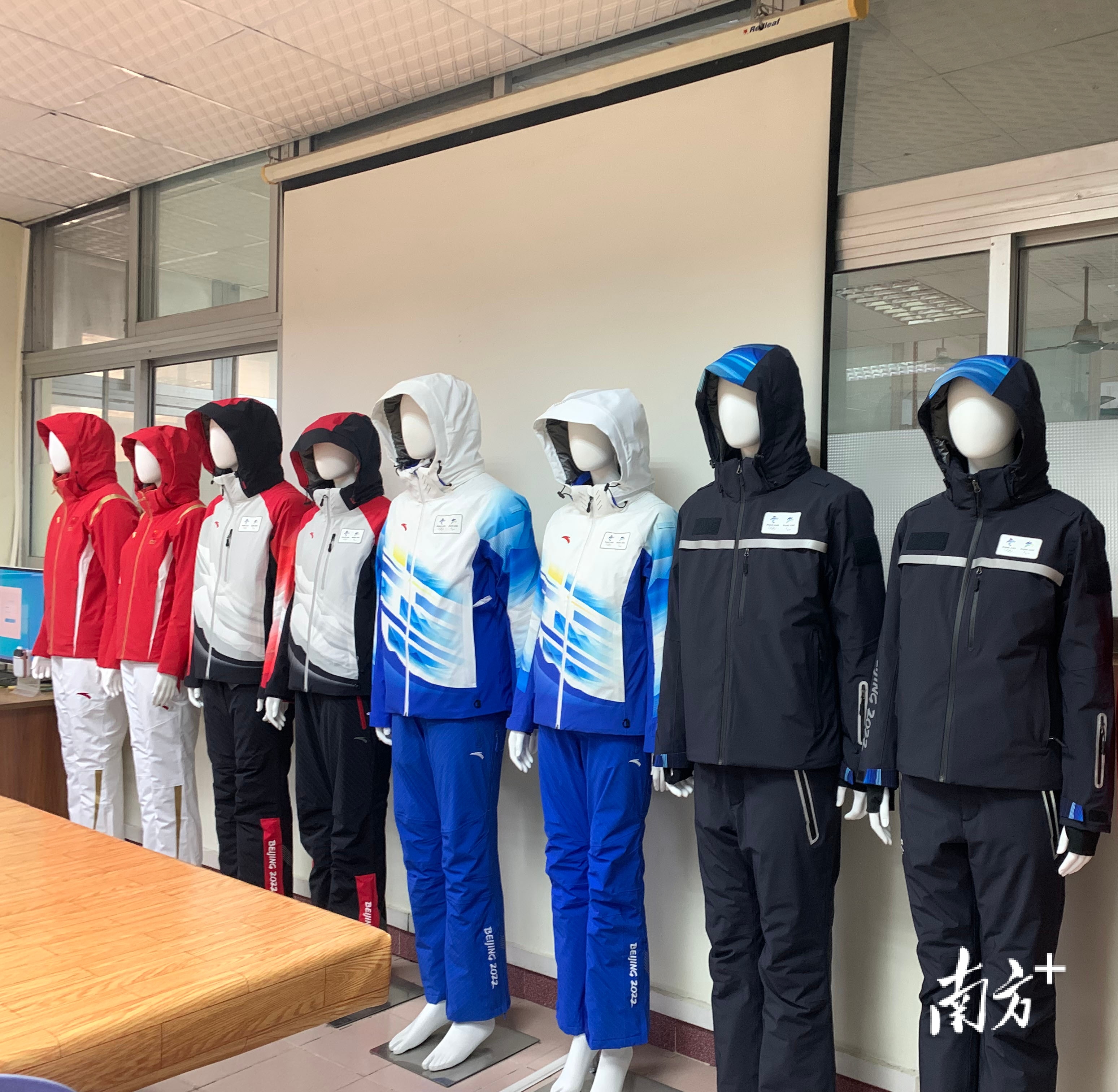 惠州宏星制衣厂的陈列馆,整齐地排列着8套服装,分别是冬奥会的领奖服装、工作人员服装、技术官员服装、志愿者服装和安保服装。