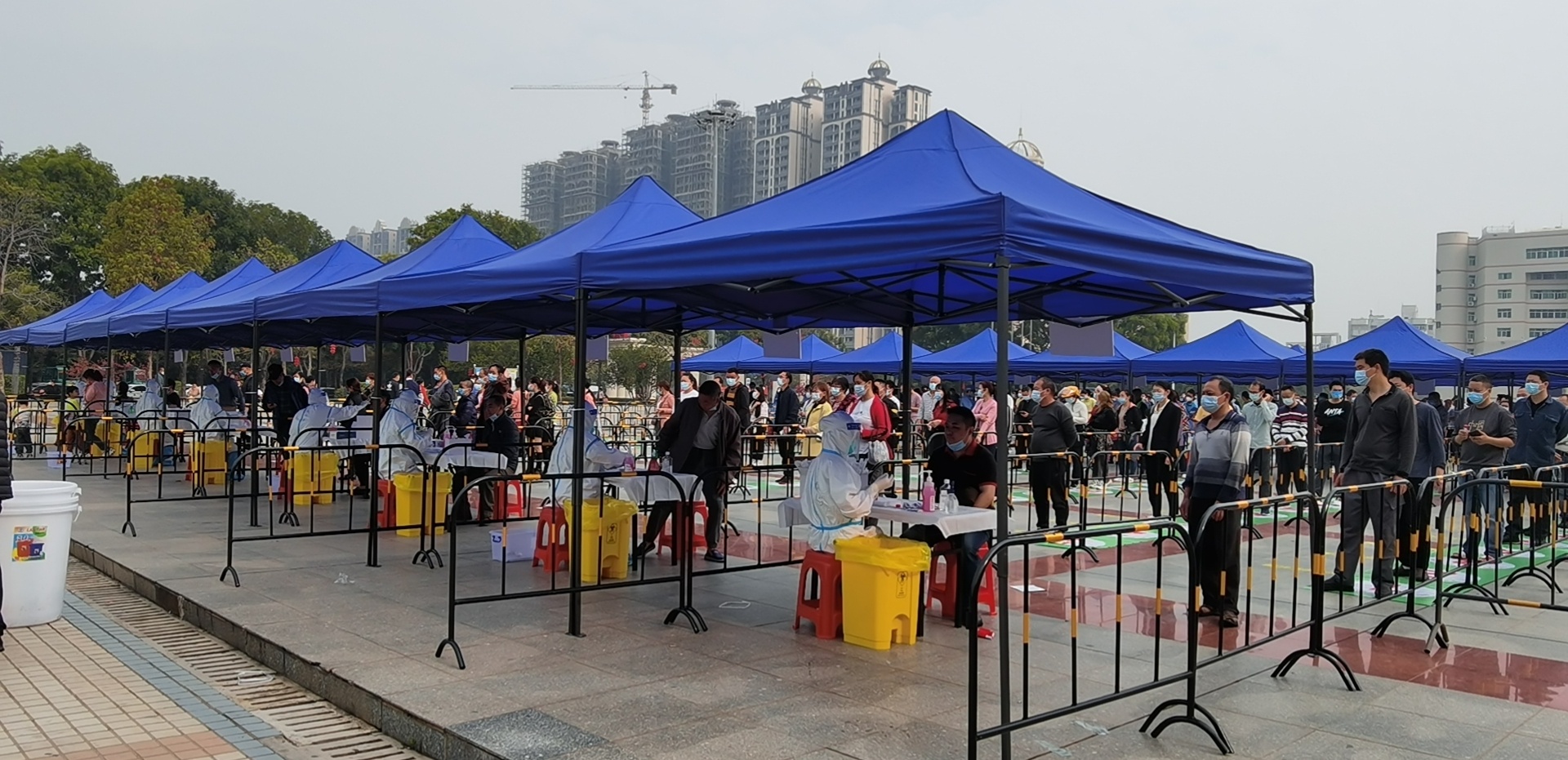 鉴于周边地区相继出现疫情,惠州市惠阳区快速出击、紧急行动,对临深、临莞、临大亚湾的3个镇街——淡水街道、秋长街道、新圩镇开展大规模核酸检测。