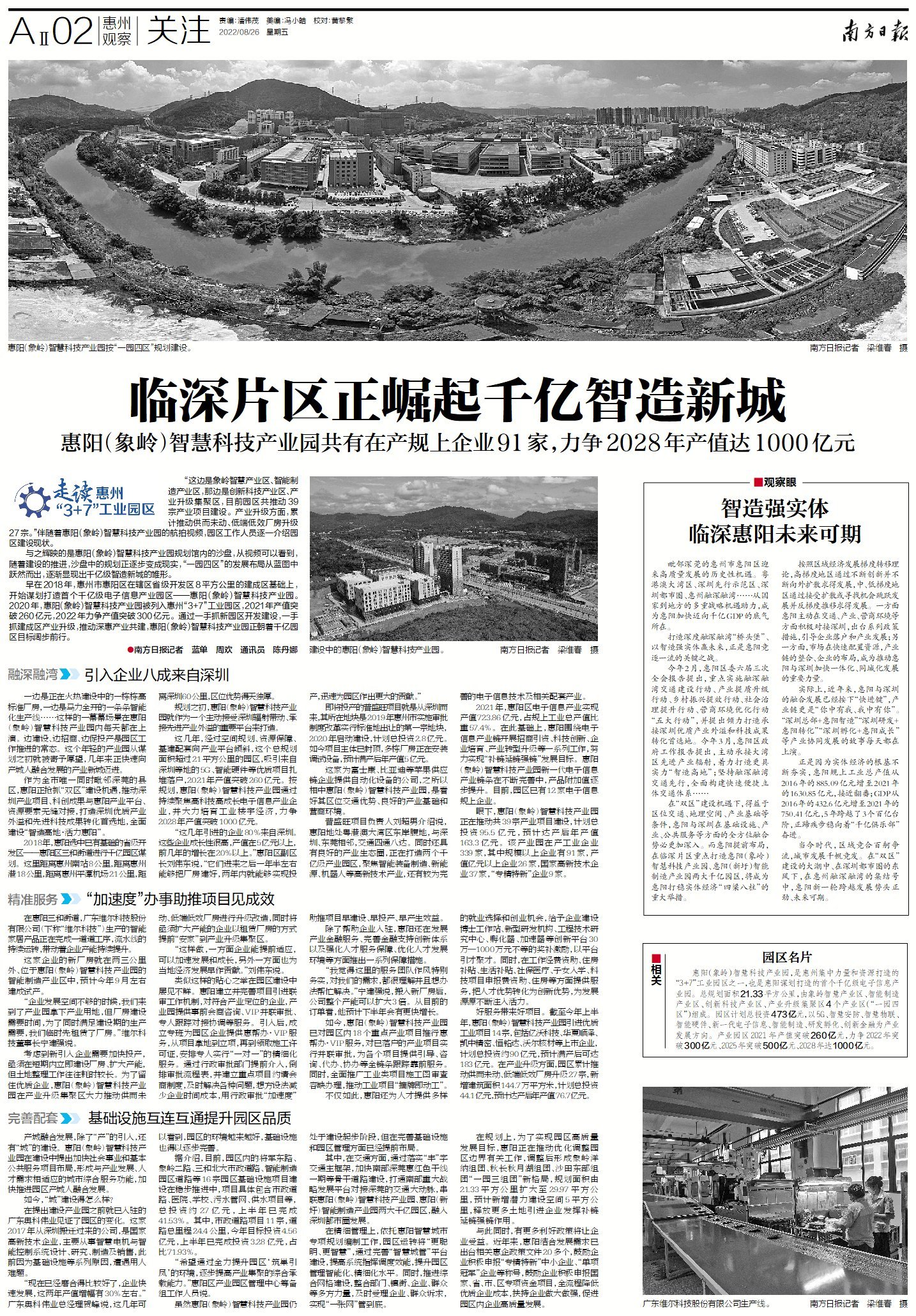 这几年,经过空间规划、资源保障、基建配套向产业平台倾斜,这个总规划面积超过21平方公里的园区,吸引来自深圳等地的5G、智能硬件等优质项目扎堆落户,2021年产值突破260亿元。按规划,惠阳(象岭)智慧科技产业园通过持续聚焦高科技高成长电子信息产业企业,并大力培育工业楼宇经济,力争2028年产值突破1000亿元。
