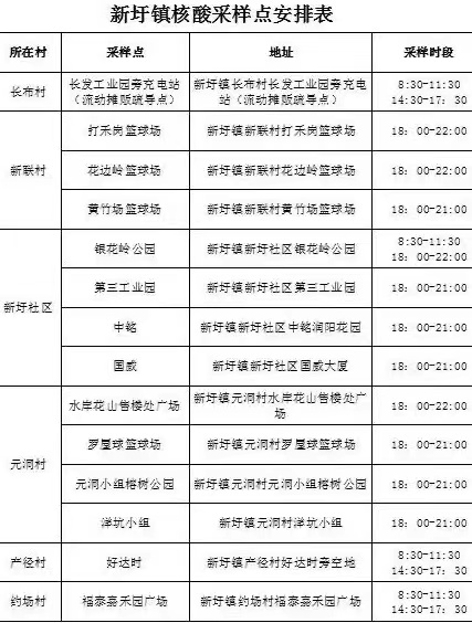 【新圩镇设16个核酸采样点】